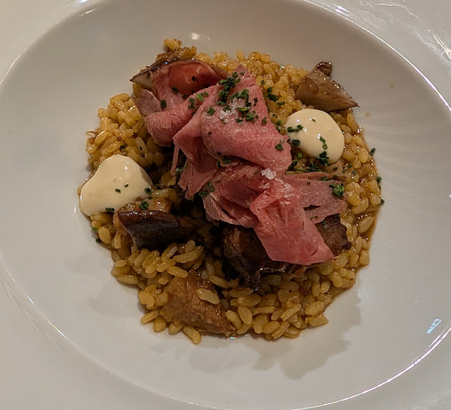 Then last night, we returned to Tradevo so that Phil could sample more dishes than the single thing he ate last Thursday night. I highly recommended the tacos with the shrimp, and the nigiri with gambones as well as the sardinias. Then he had the wild boar cheeks and I took up the arroz dish he had the last time. All good.