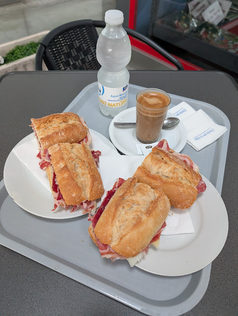 Then we headed back home to Sevilla the next day on a 1:30 train - our handmade sandwiches with hand cut ham which we grabbed at the train station and then our train car on the way home. We wre in our apartment in almost two hours on the dot...